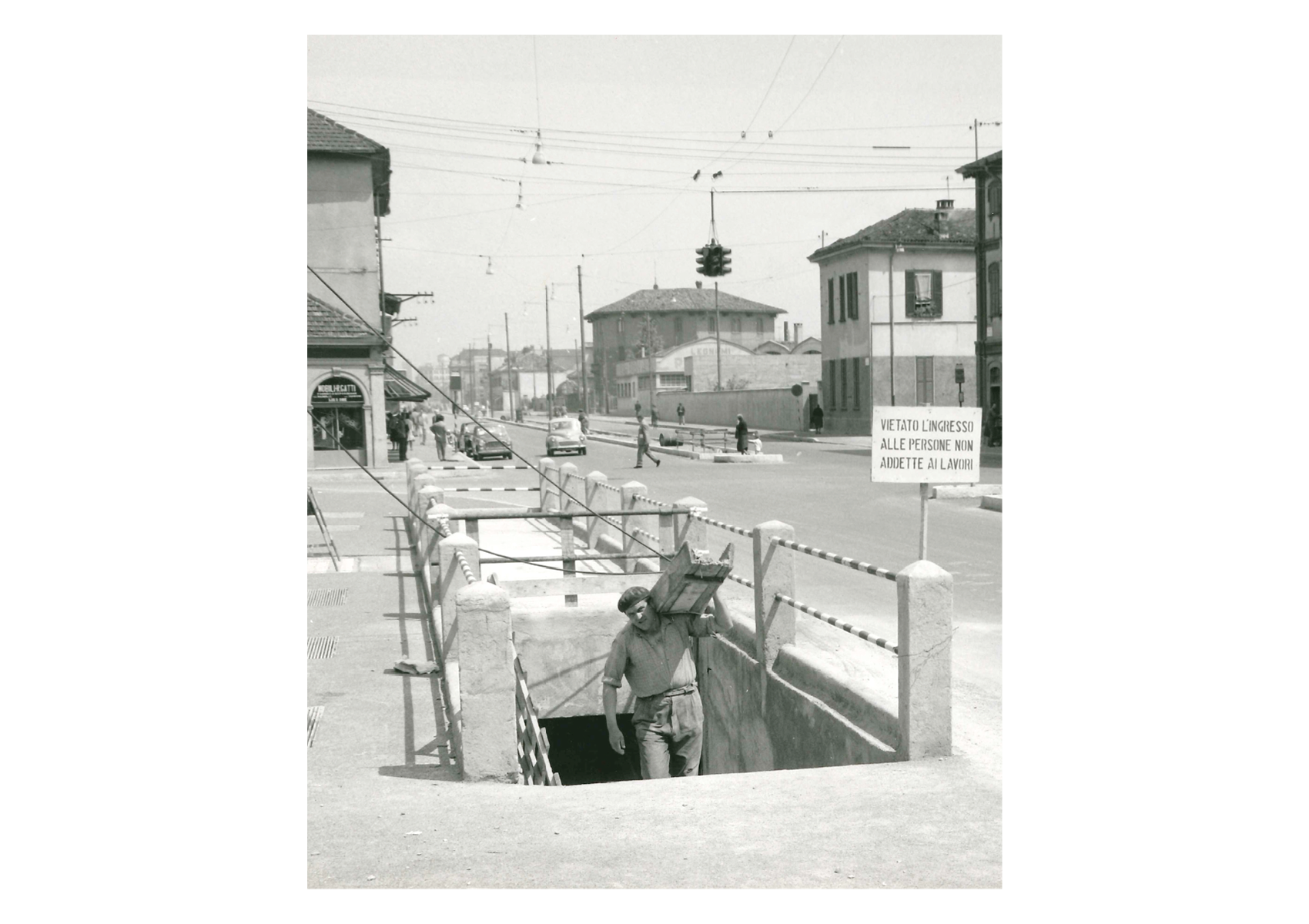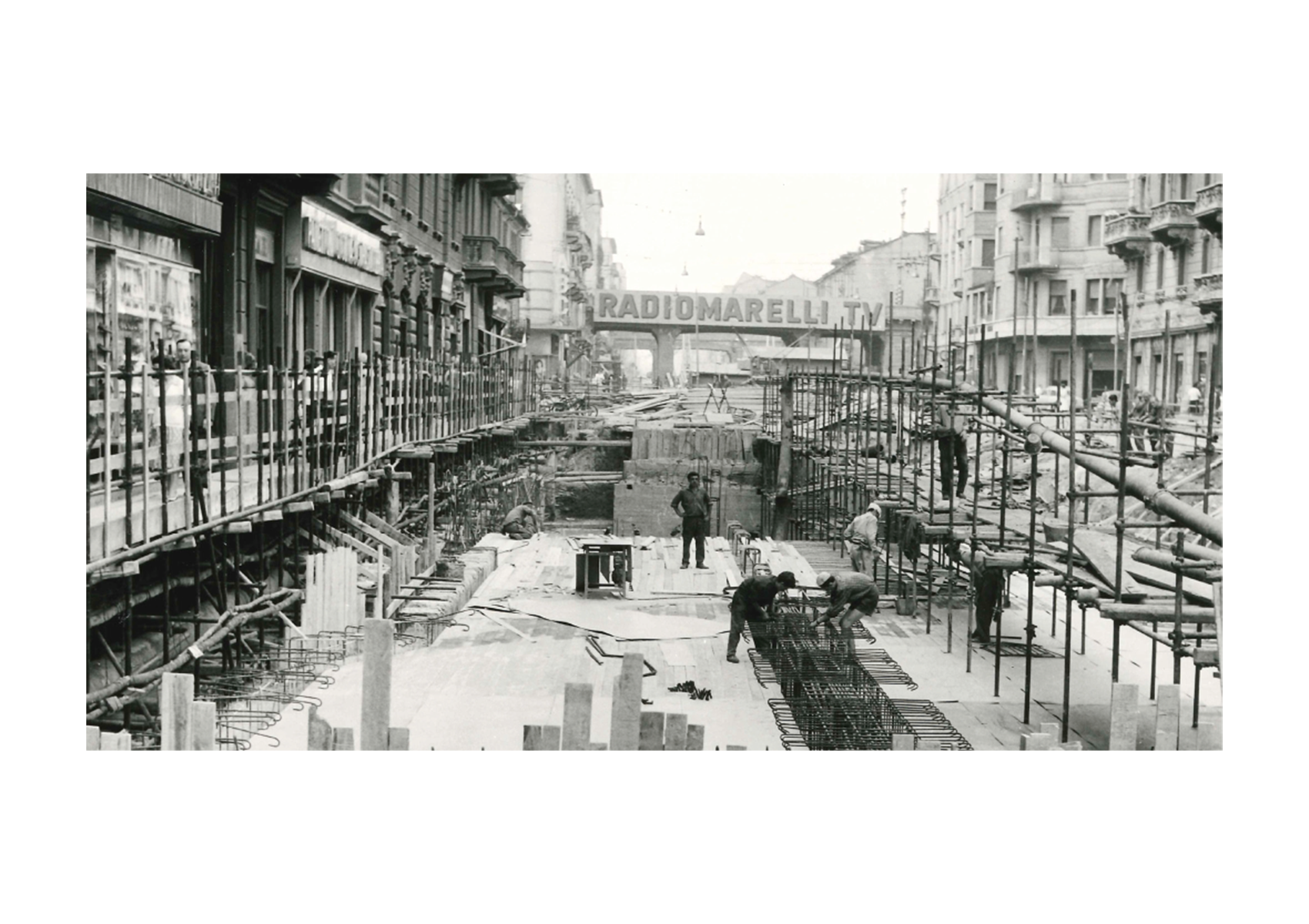 Il 6 ottobre 1955, il Sindaco Virgilio Ferrari firma l’atto notarile che segna la nascita di MM, Metropolitana Milanese, sorta con uno scopo grandioso e specifico al tempo stesso: costruire la sotterranea della città, la linea rossa, come di colore rosso sarà il marchio della nuova società. Il processo che ha accompagnato la costruzione della prima linea metropolitana cittadina è una straordinaria storia simbolica di ciò che è, ed è sempre stata, Milano.