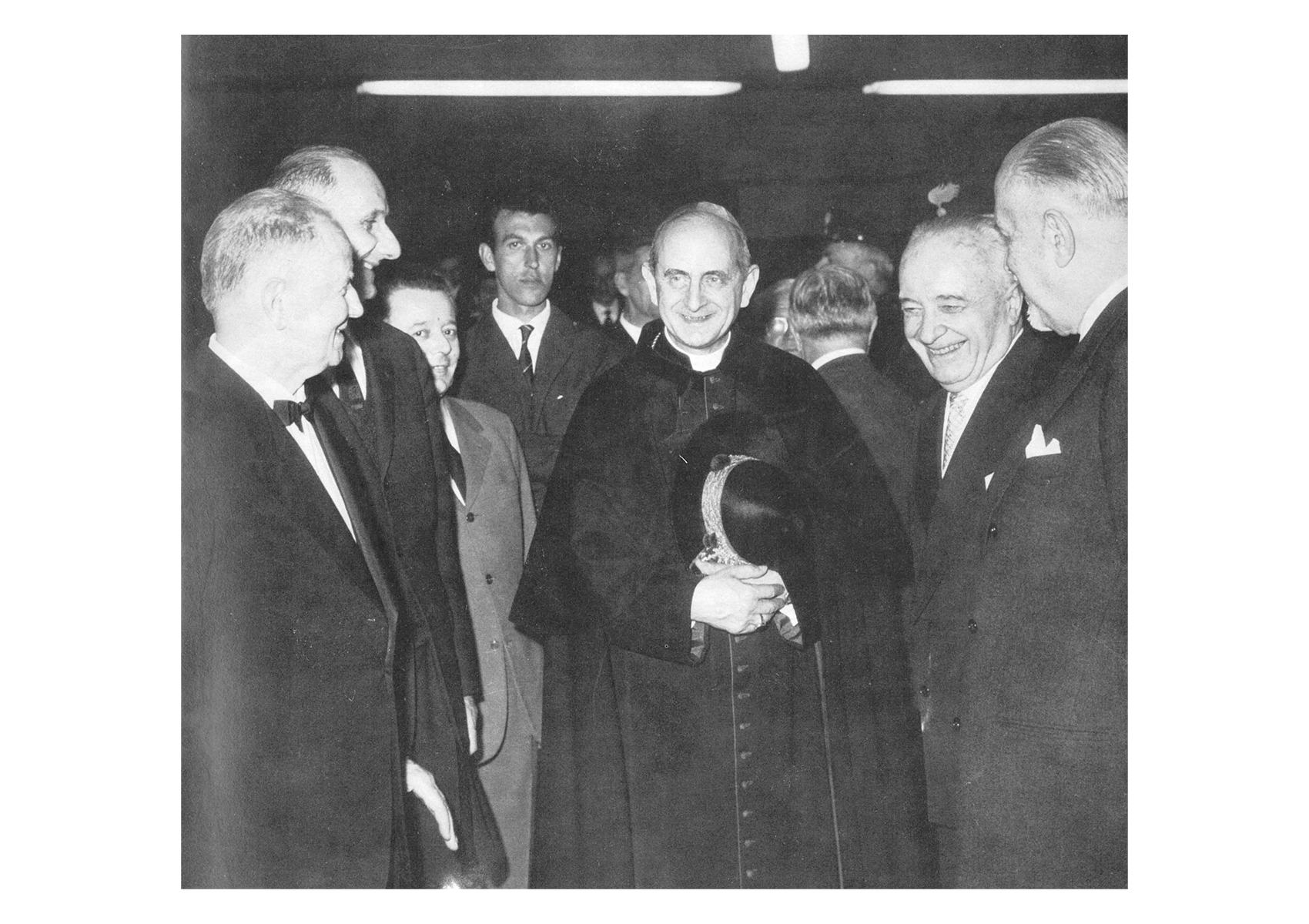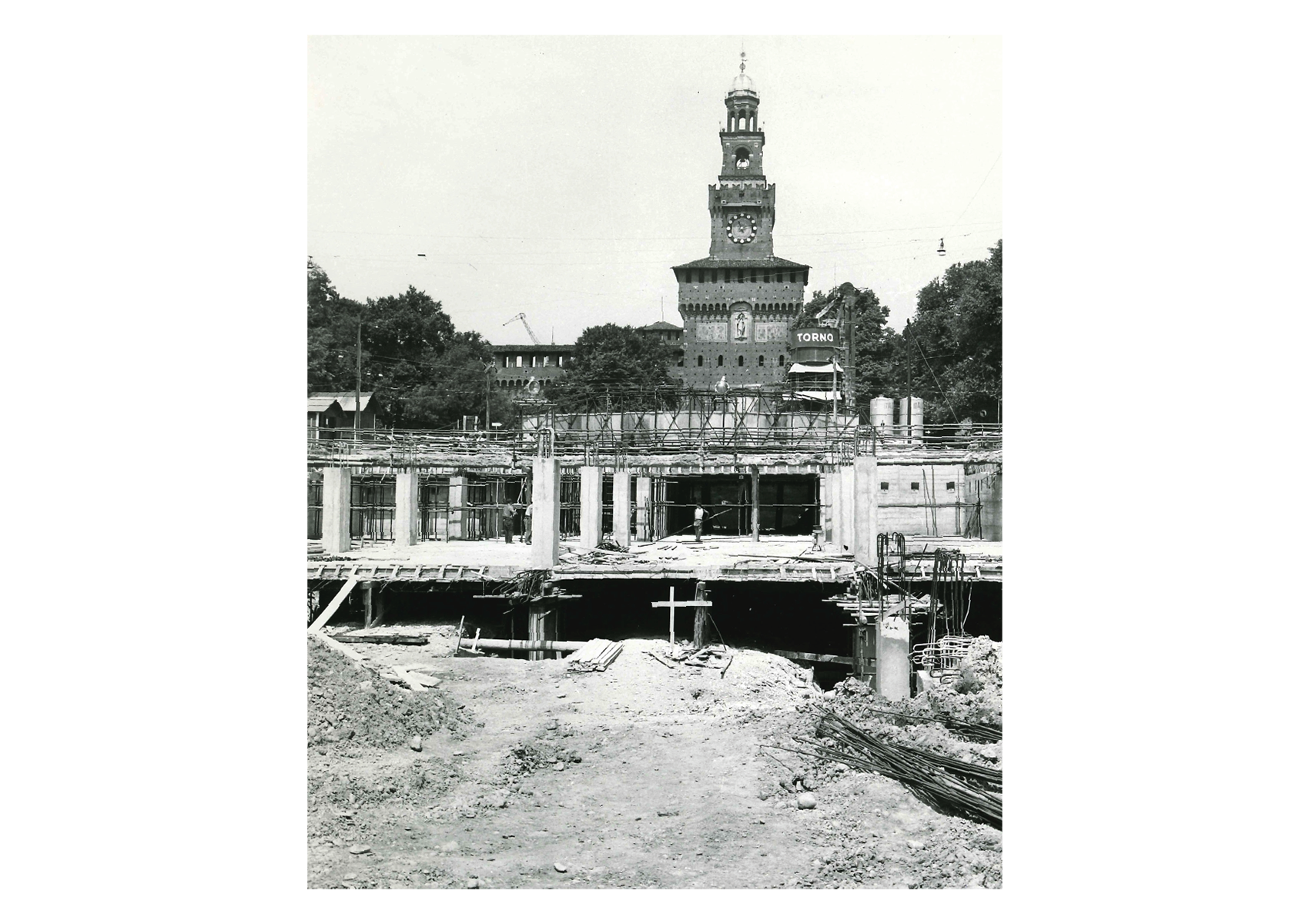 È l’immagine di ciò che è stato il dopoguerra milanese, un motore di rinascita denso di episodi. I restauri della Ca’ Granda, iniziati nel 1951 dopo i devastanti bombardamenti del 1943, per trasformare il vecchio Ospedale distrutto nella sede centrale dell’Università degli Studi, vennero completati nel 1958, quando i lavori della linea rossa erano già ben visibili nel centro cittadino. Al tempo stesso, e nei medesimi anni, la città si espandeva, in particolare verso est e verso ovest, unendo funzioni abitative e funzioni pubbliche. Nel 1953 il Politecnico inaugurò, grazie a Gino Cassinis, il primo centro di calcolo dell’Europa continentale. Ed è sempre negli anni Cinquanta che la Bocconi apre, progettati da Giovanni Muzio, il pensionato e la biblioteca, mentre Ignazio Gardella disegna il centro linguistico e informatico.