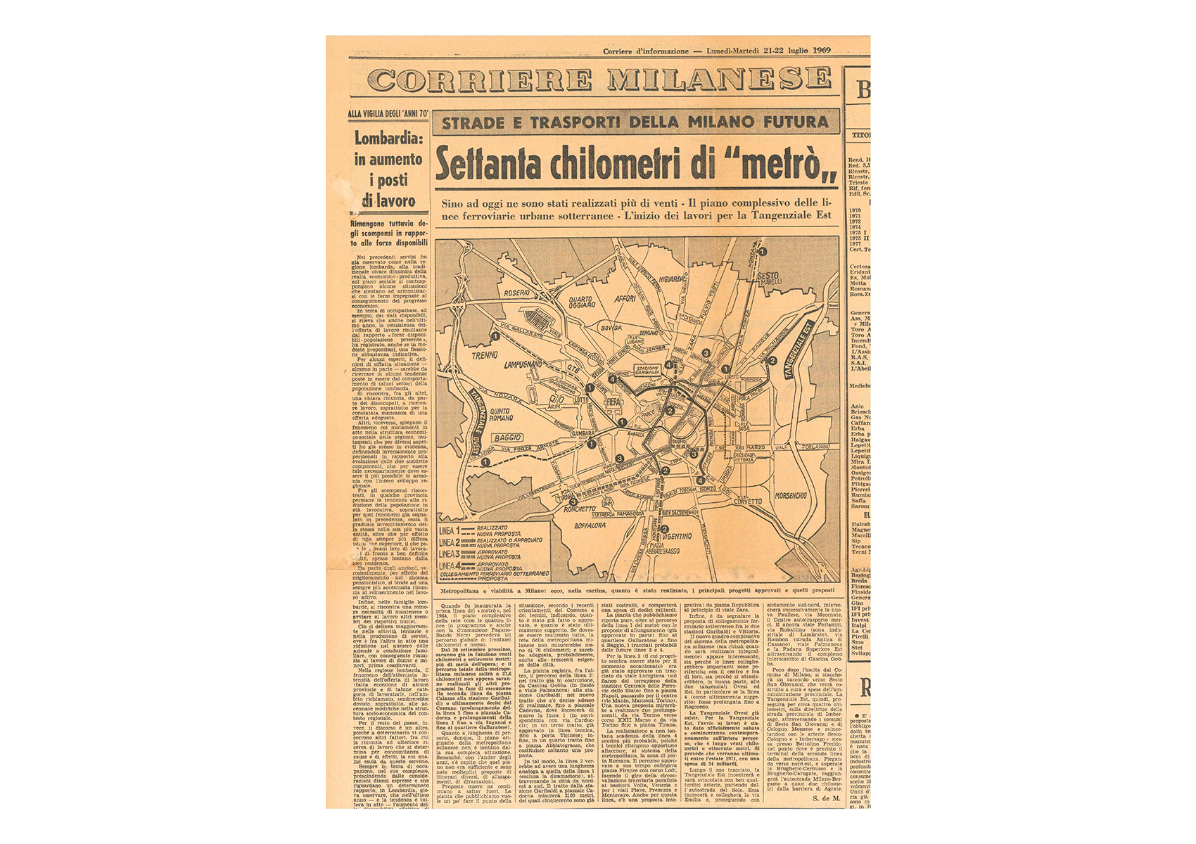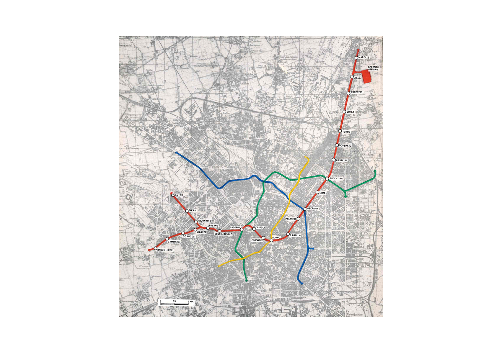 La metropolitana nacque con i soldi dei milanesi, da loro voluta e finanziata con un prestito obbligazionario, come i giornali non cessarono mai di ricordare. Non fu lo Stato a contribuire, ma i milanesi, vecchi e nuovi, in una città che da sempre rinnova con frequenza i suoi cittadini. La prima linea, che attraversa trasversalmente la città, unisce essenzialmente i luoghi del lavoro, due periferie operaie, un tessuto culturale e sociale che non può essere disgiunto dalla Milano di quegli anni.