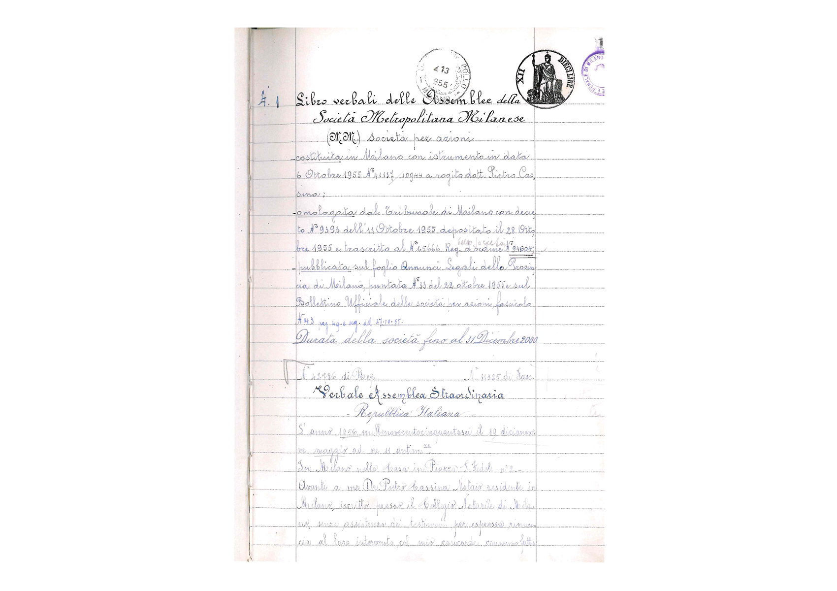 Questa sezione raccoglie documenti e fotografie storiche che raccontano le origini di MM Spa e i primi passi nella realizzazione della metropolitana milanese. Dai documenti ufficiali sulla costituzione dell’Azienda ai materiali che testimoniano i primi scavi per la Linea 1, ogni immagine e ogni scritto offrono uno sguardo unico sul lavoro, l’ingegno e la determinazione che hanno caratterizzato i primi anni di attività. Questo archivio rappresenta un viaggio nella storia della nascita di MM Spa e nei momenti fondamentali che hanno permesso la realizzazione delle prime linee della metropolitana di Milano, mettendo in luce sia le sfide che hanno guidato lo sviluppo del trasporto urbano cittadino.