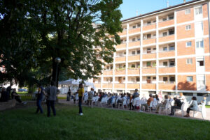 Il concerto ha incuriosito il pubblico degli abitanti del caseggiato e dell’intero quartiere, trasformando l’evento in un momento partecipato e di valorizzazione dei luoghi dell’abitare: spazi non convenzionali come i cortili dei caseggiati popolari diventano così ambienti per iniziative di aggregazione e cultura. Organizzare eventi e iniziative artistico culturali nei caseggiati offre un’opportunità di svago e intrattenimento agli inquilini con l’obiettivo che la buona cultura sia accessibile a tutti. E, al contempo, è un invito ai cittadini ad entrare negli stabili, nei cortili, e viverli come luoghi di socialità rompendo i pregiudizi.