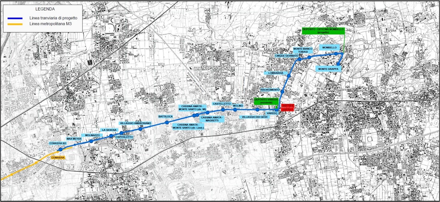 Il progetto prevede la messa in sicurezza di numerosi (circa 100) passi carrai esistenti e la realizzazione di un nuovo deposito di manutenzione tram a Limbiate in zona Mombello.